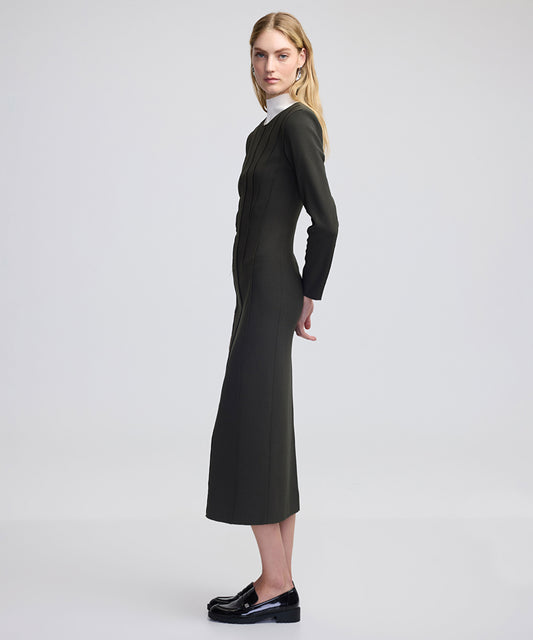 Lacoste Kadın Classic Fit Uzun Kollu Bisiklet Yaka Koyu Gri Elbise