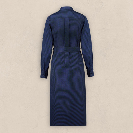 Degaje Detaylı Yırtmaçlı Lacivert Midi Elbise