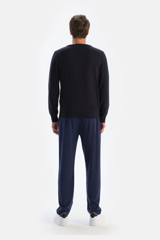 Lacivert Erkek Kaşmir Karışımlı V Yaka Triko