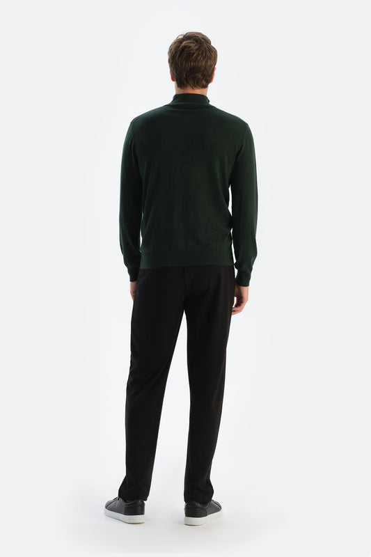 Koyu Yeşil Erkek Kaşmir Karışımlı Fermuar Yaka Triko
