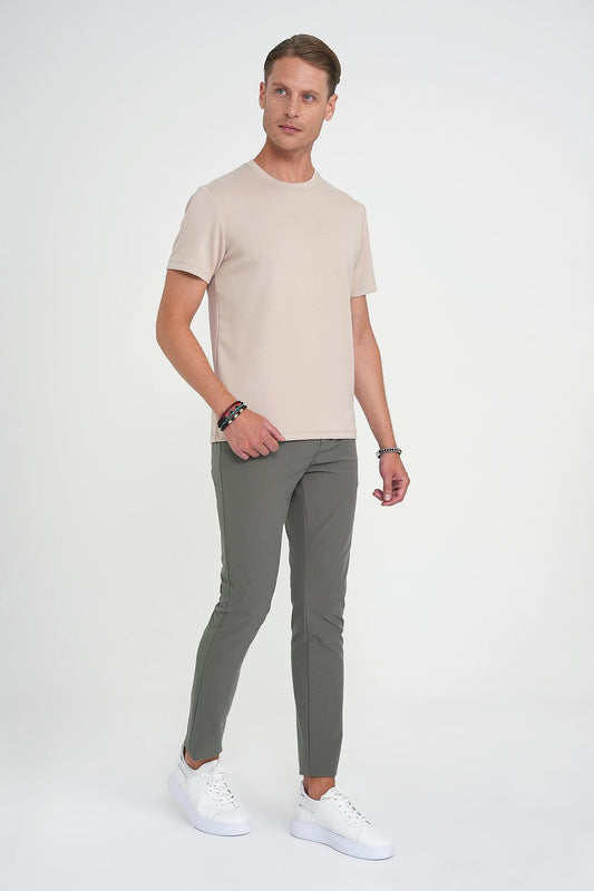 Slim Fit Yan Cepli Esnek Düz Haki Pamuk Pantolon P 1197