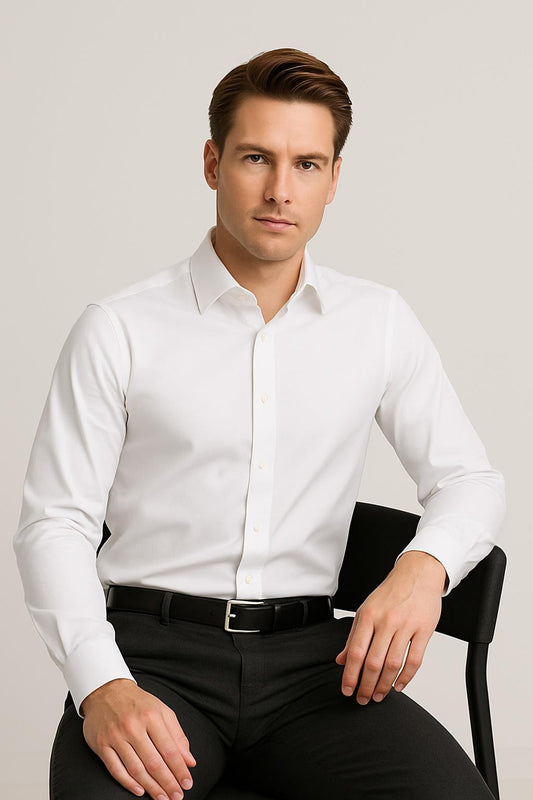Gk 157 Slim Fit Pamuk Saten Uzun Kol Klasik Beyaz Gömlek