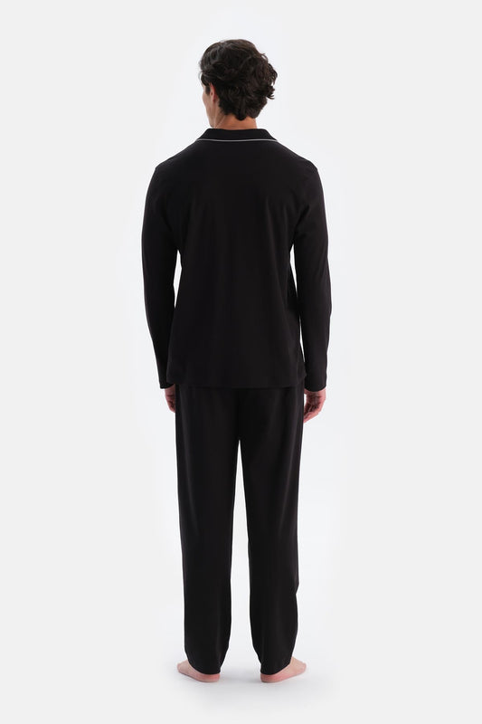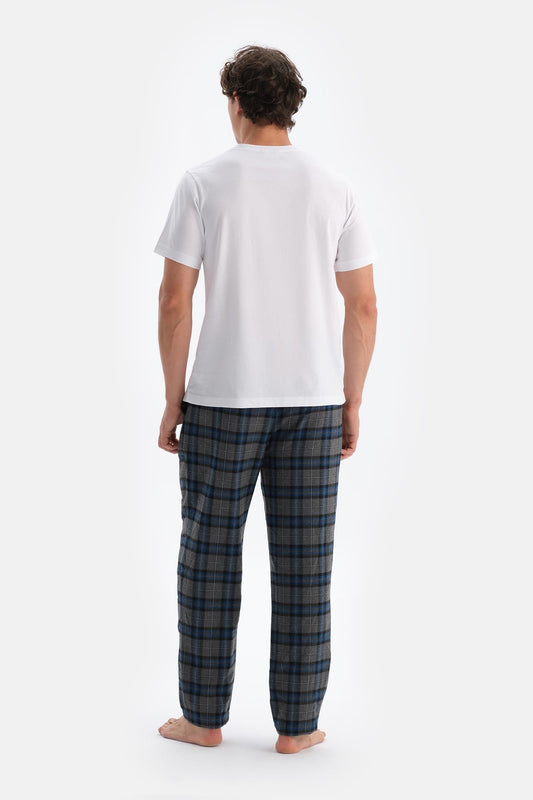 Mavi Patlı Uzun Kollu Tişört Pantolon Pijama Takımı