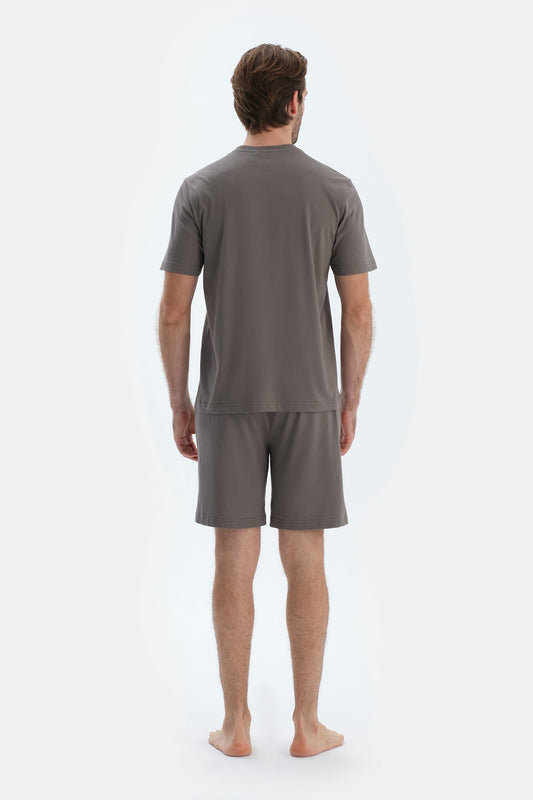 Gri Kısa Kollu Bisiklet Yaka Penye Modal Tişört