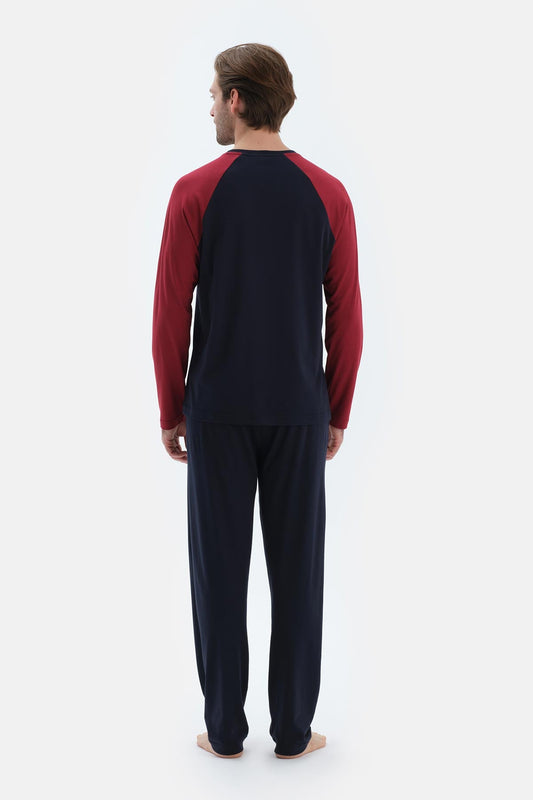 Lacivert Reglan Kol Garnili Pamuk Modal Pijama Takımı