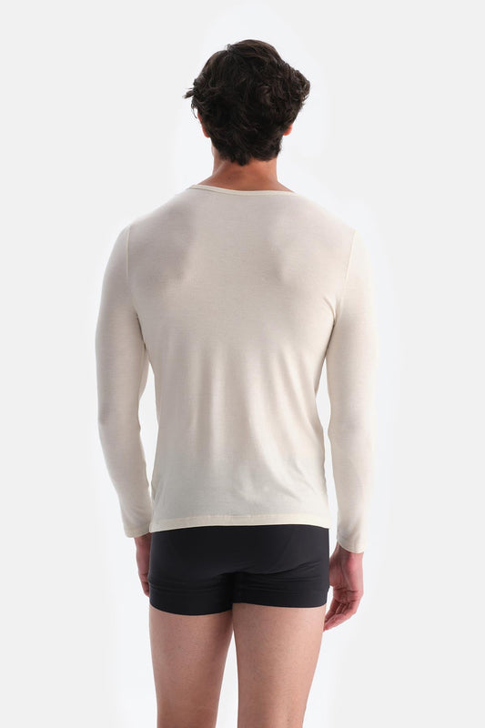 Ekru D1051 Modal Kaşmir Bisiklet Yaka Uzun Kollu Üst