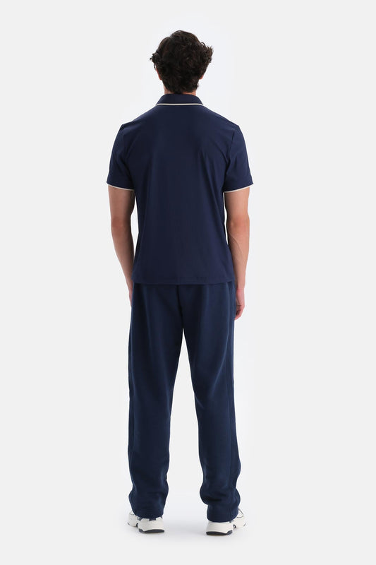 Lacivert Erkek Teknik Kumaş Polo Yaka Detaylı Tişört