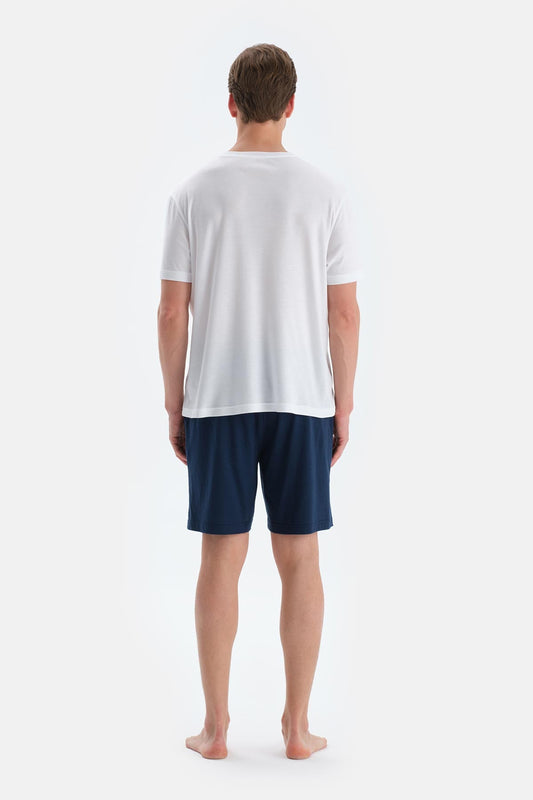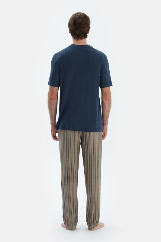 Lacivert Pat Ve Cep Detaylı Basıc Tişört Pantolon Pijama Takımı