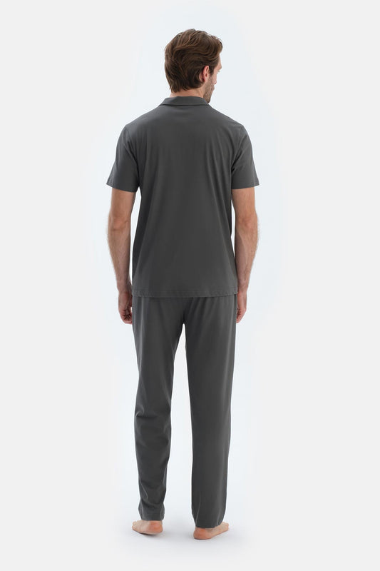 Gri Kısa Kollu Dikiş Detaylı Gömlek Pantolon Pijama Takımı