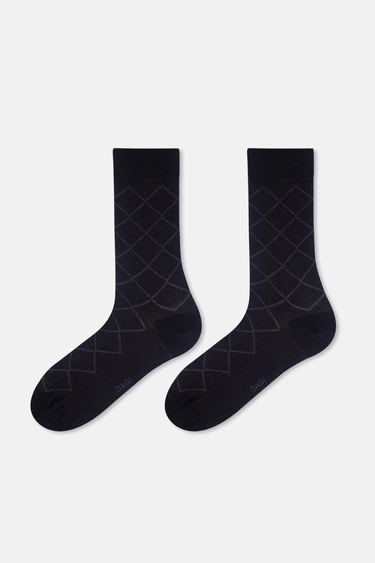 Siyah Erkek Dörtgen Desen Bambu Çorap