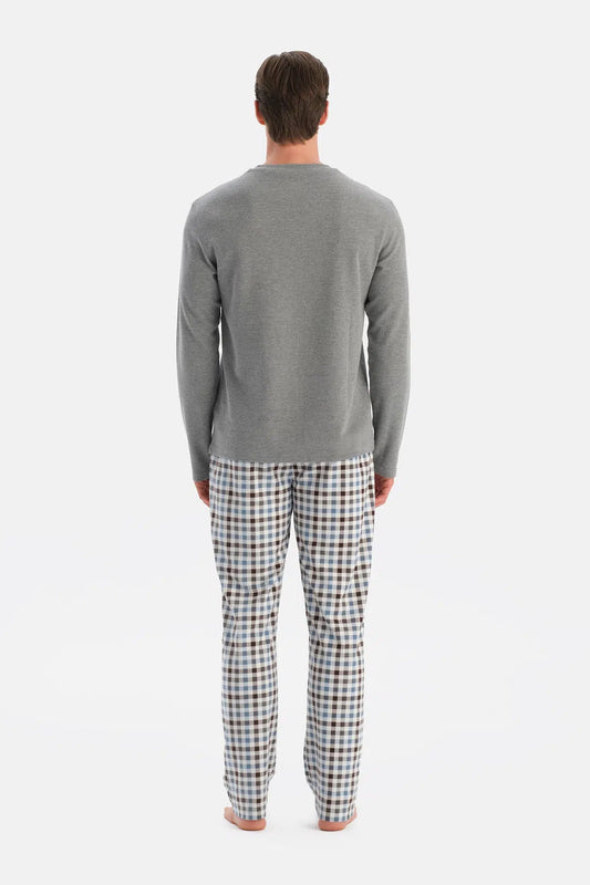 Gri Dikiş Detaylı Bisiklet Yaka Termal Tişört Pantolon Pijama Takımı