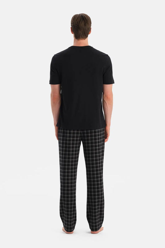 Antrasit Melanj Dikiş Detaylı Waffle Tişört Pantolon Pijama Takımı