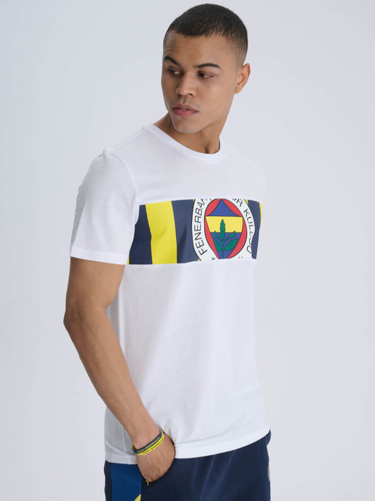 Fenerbahçe Beyaz Tribün Brush Şeritli Erkek Tshirt