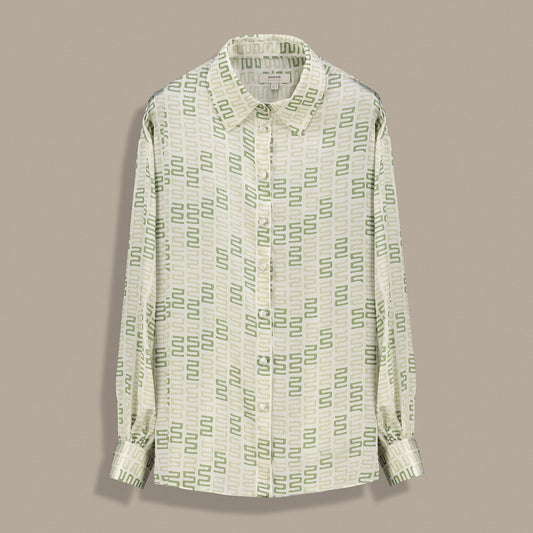 Jadesa Uzun Kol Desenli Yeşil Gömlek