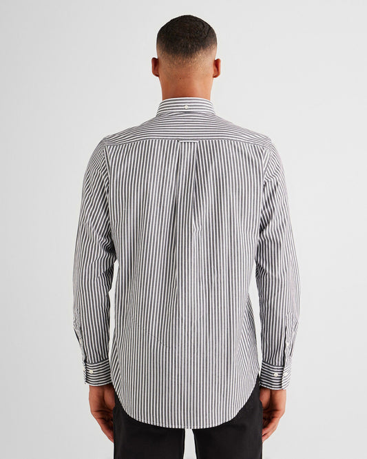 Gant Erkek Siyah Regular Fit Düğmeli Yaka Çizgili Gömlek