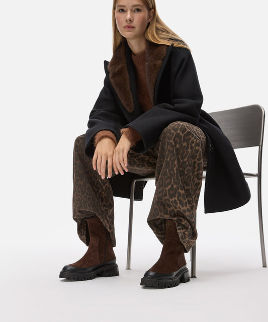 Flok Baskılı Wide Leg Fit Jean Pantolon