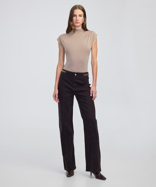 Zincir Aksesuarlı Wide Leg Jean Pantolon