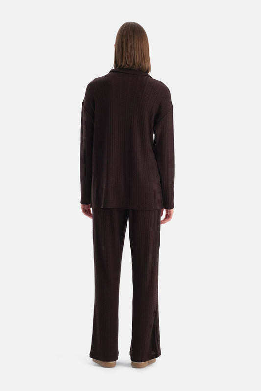 İndirimKoyu Kahve Örgü Detaylı Pantolon