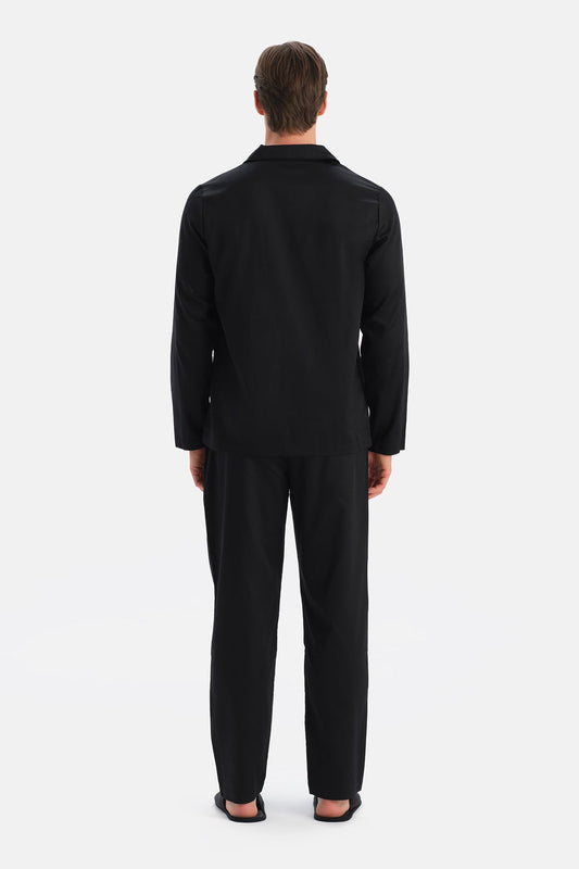 Siyah Travel Biye Detaylı Dokuma Gömlek Pantolon Pijama Seti