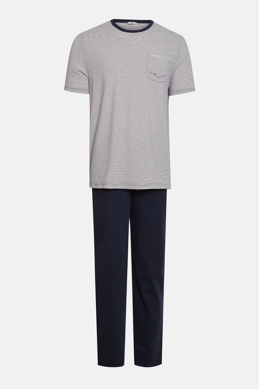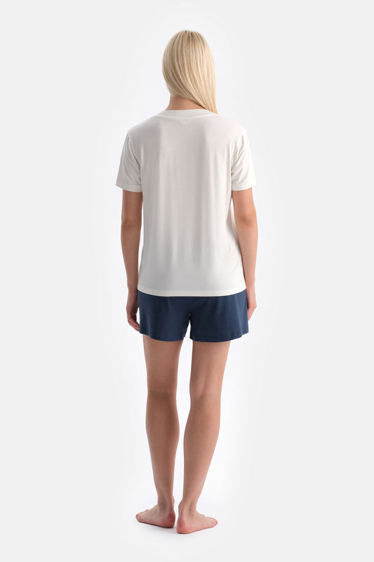 Lacivert Kısa Kollu Cep Ve Nakış Detaylı Tişört Pantolon Pijama Takımı