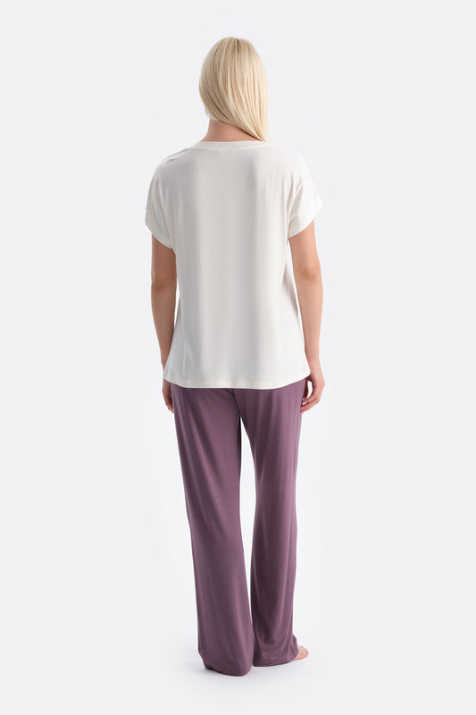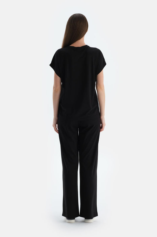 V Yaka Dantel Detayli Tişört Pantolon Takim