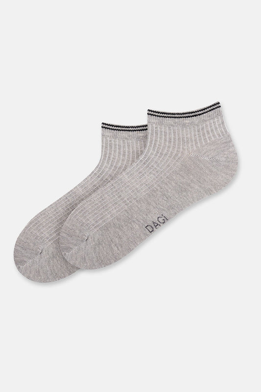 Beyaz-gri Melanj Erkek 2'li Pamuklu Rıb Dokulu Patik Çorap