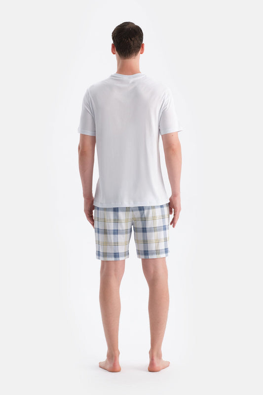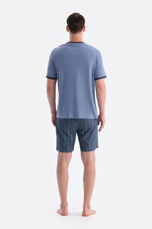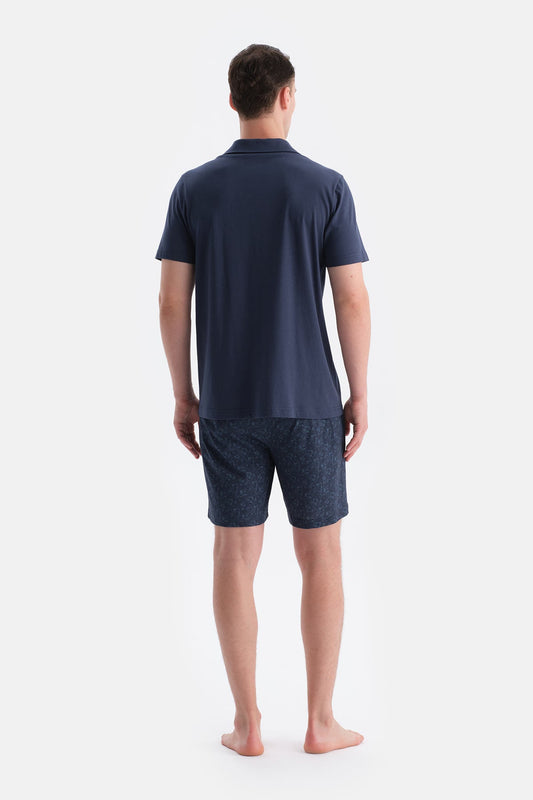 Kisa Kollu Polo Yaka Alti Desenli Tişört Şort Takim