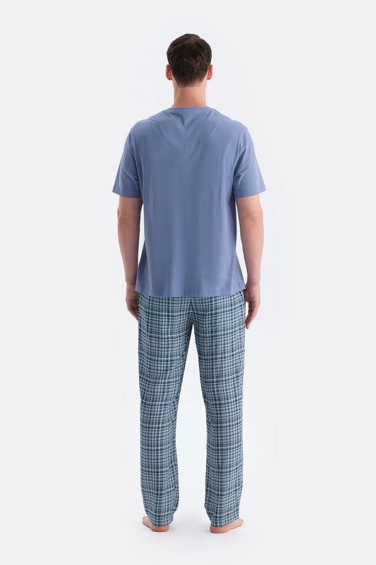 Kisa Kollu Patli Alti Ekoseli Tişört Pantolon Takim