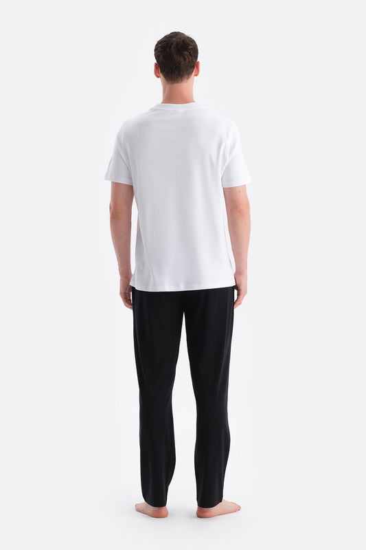 Kisa Kollu Pat Ve Cep Detayli Tişört Pantolon Takim
