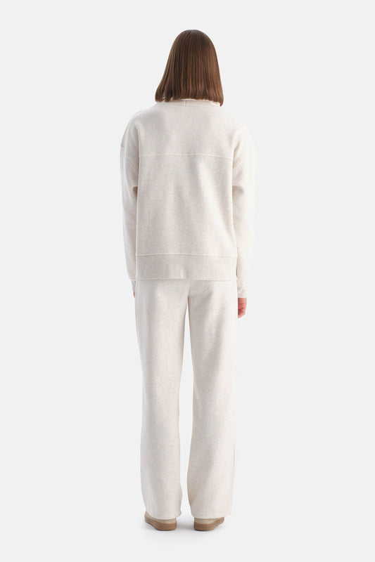 Ekru Melanj Travel Dik Yaka Üç Iplik Sweathsirt