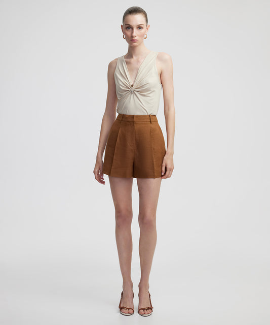 Kontrast Aksesuarlı Büzgülü Tişört