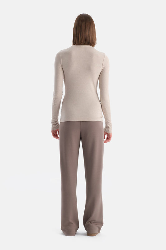 Yarim Düğmeli Kaşmir Modal Uzun Kollu Tişört