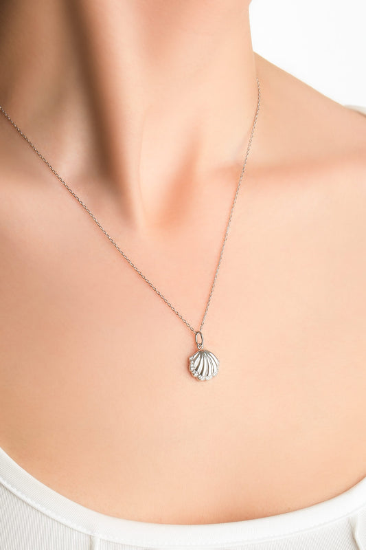 Deniz Kabuğu 18 Ayar Beyaz Altın Kaplama 45 Cm Gümüş Kolye 5175790199