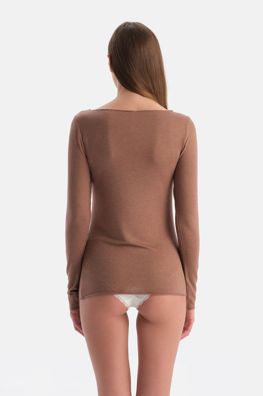 Mocha Modal Kaşmir Kayık Yaka Uzun Kollu Üst