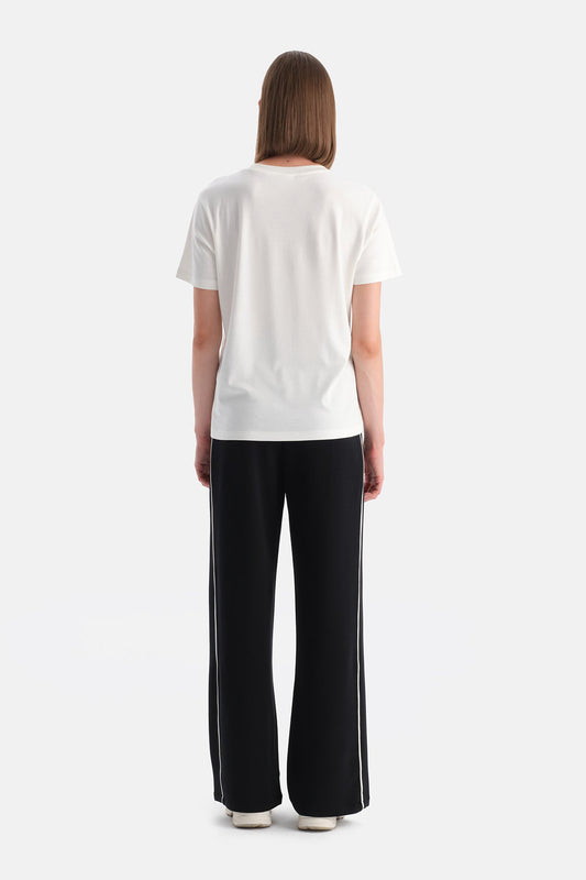Siyah Kadın Modal Çift Biye Detaylı Eşofman Altı
