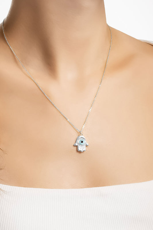 Fatma Ana Eli 18 Ayar Beyaz Altın Kaplama 45 Cm Gümüş Kolye 5163860199