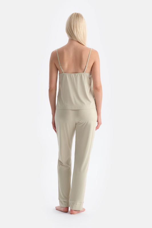 Ada Çayı V Yaka Ince Askılı Viskon Atlet Pantolon Pijama Takımı