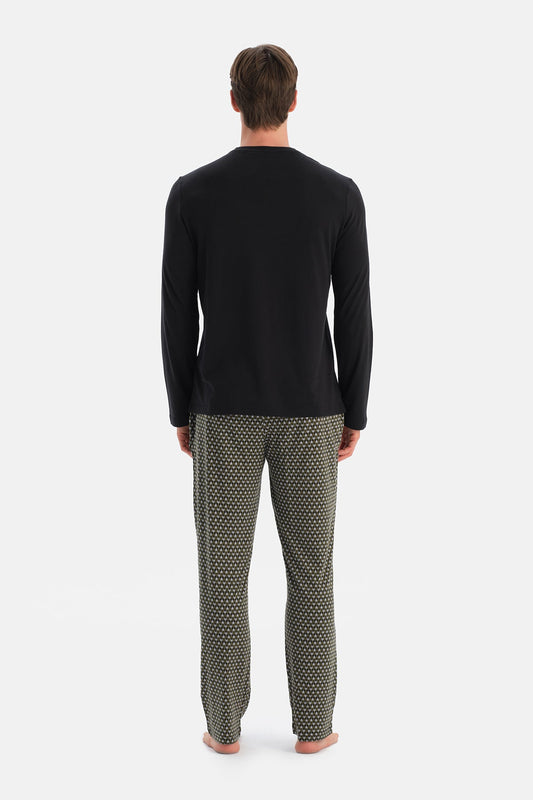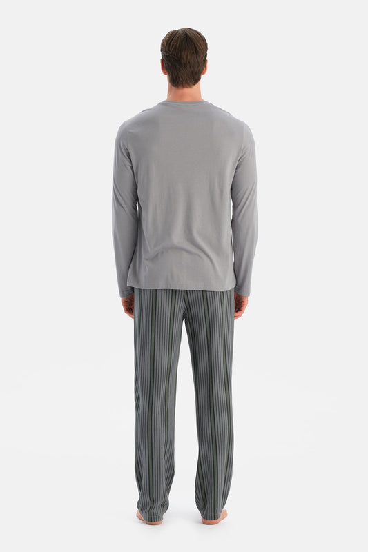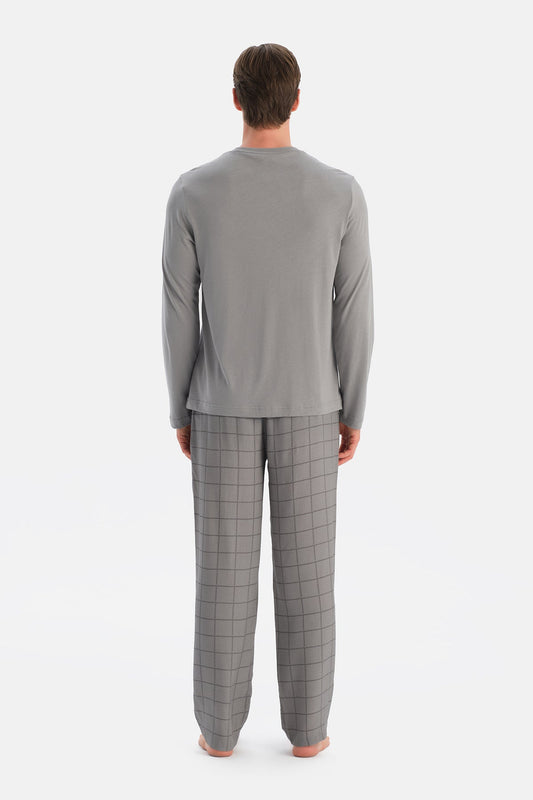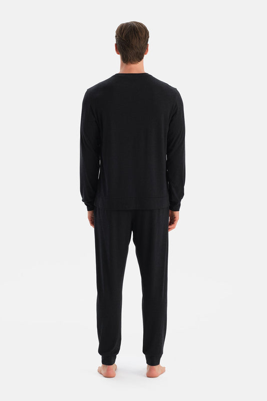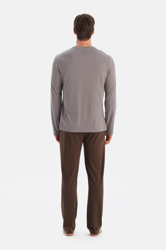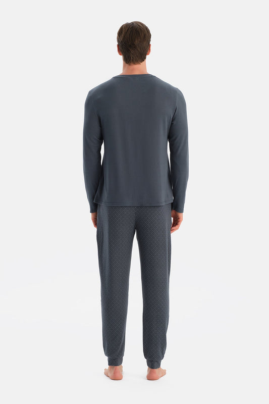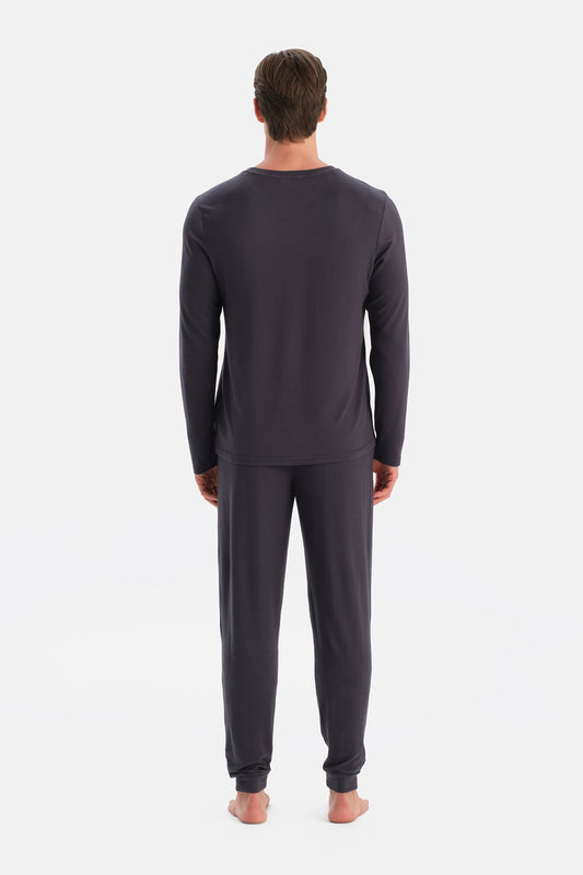 Antrasıt Dikiş Detaylı Uzun Kollu Termal Tişört Pantolon Pijama Takımı