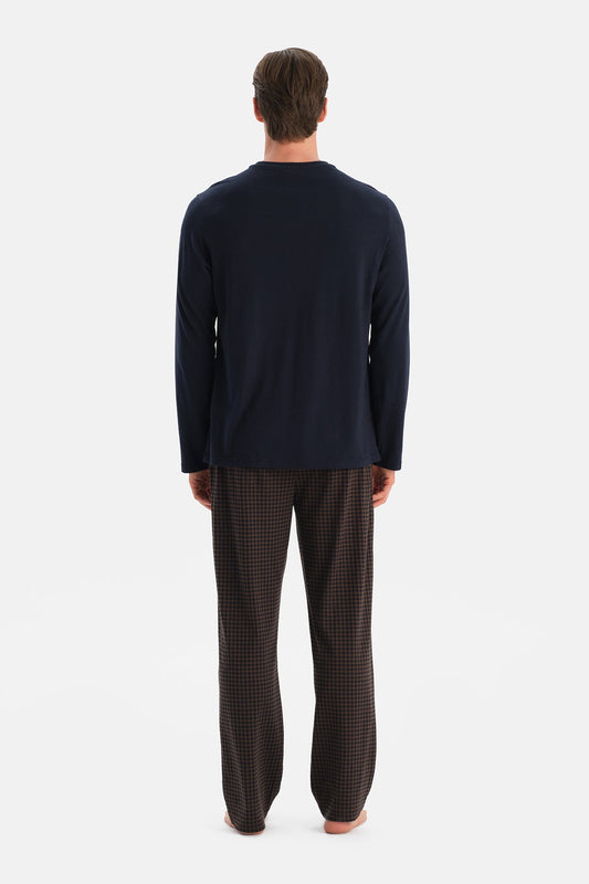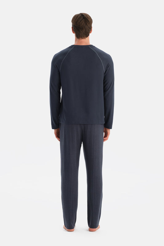 Indigo Dikiş Detaylı Uzun Kollu Termal Tişört Pantolon Pijama Takımı