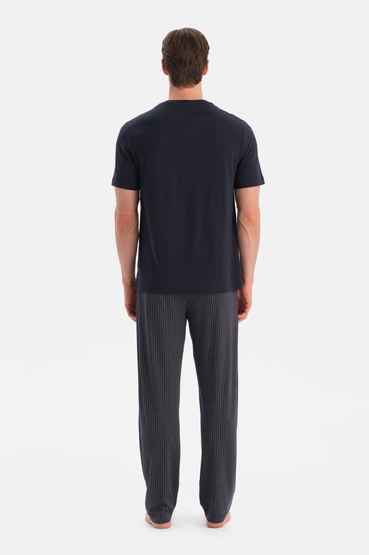 Lacivert Dikiş Detaylı Ve Patlı Termal Tişört Pantolon Pijama Takımı