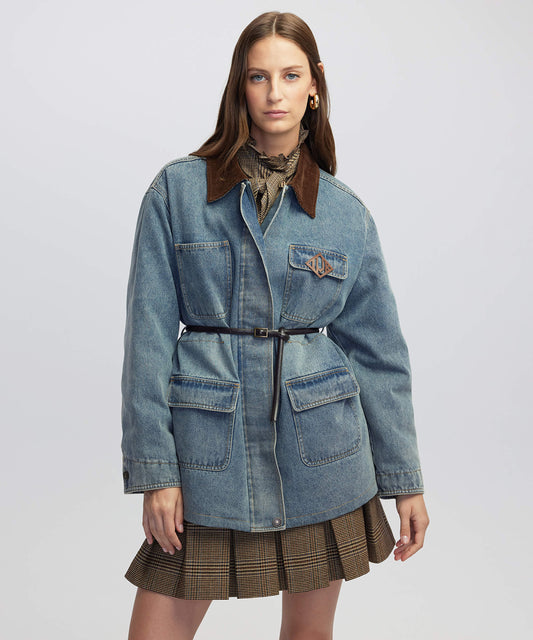 Kontrast Kadife Yaka Mont