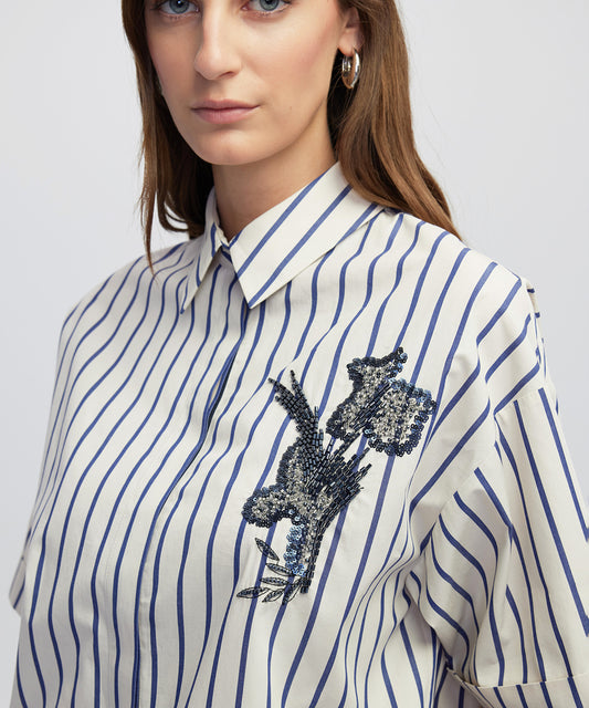TükendiIşlemeli Çizgi Desen Gömlek