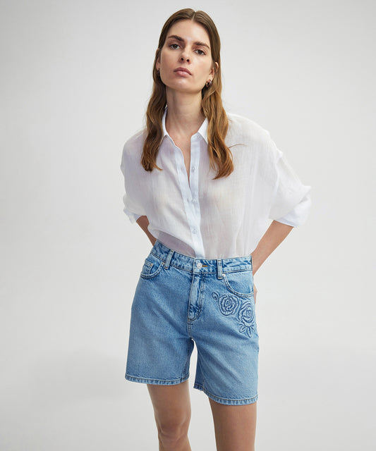 TükendiÇiçek Motifli Denim Şort