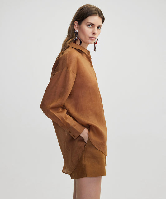 Belden Bağlamalı Kırışık Efektli Gömlek