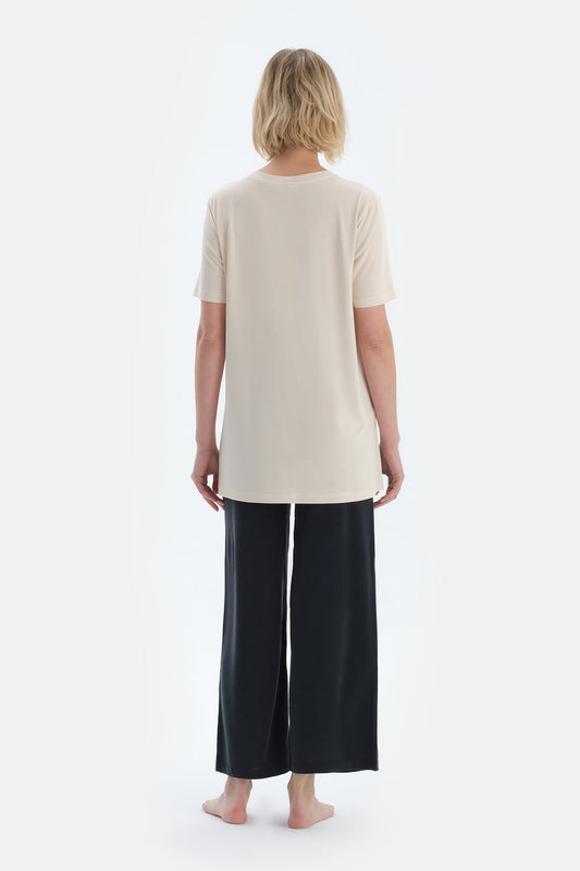 Ekru Bisiklet Yaka Modal Hamile Tişört