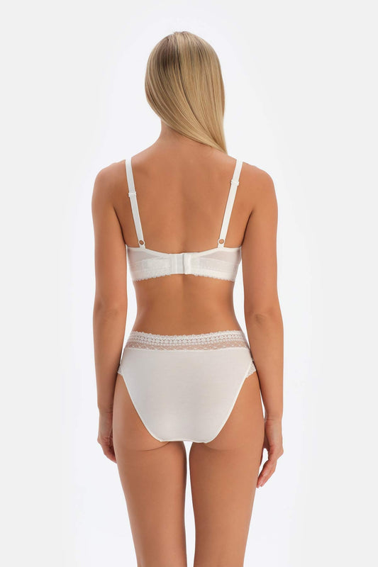 Kırık Beyaz Dantel Detaylı Brıef Külot