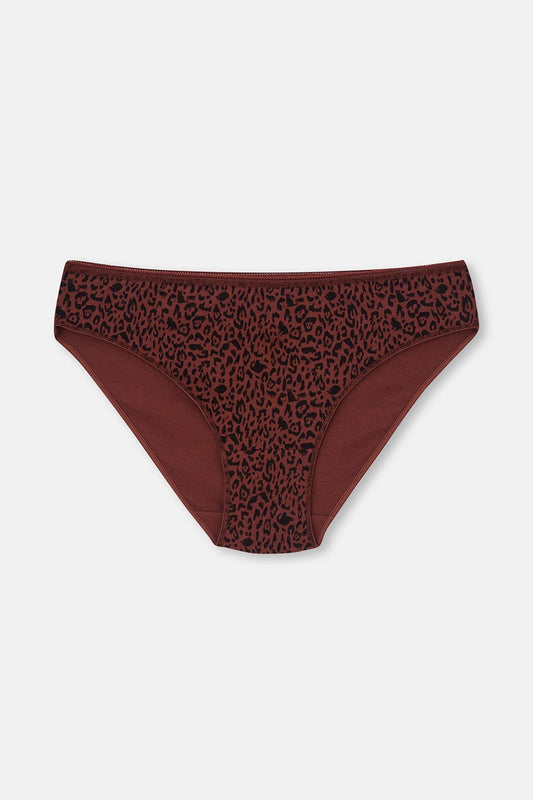 Kızıl Kahve-koyu Bej Kadın 3'lü Desenli Brıef Külot
