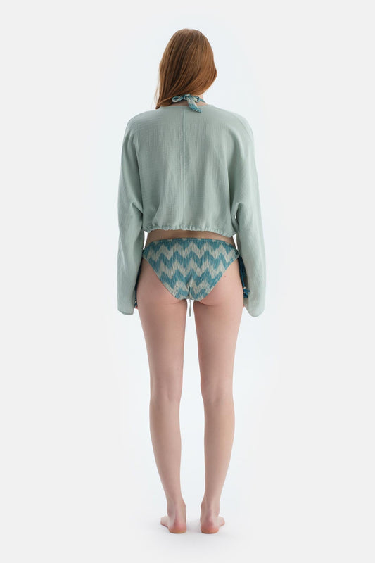 Mint Yeşili Önden Bağlamalı Kısa Gömlek