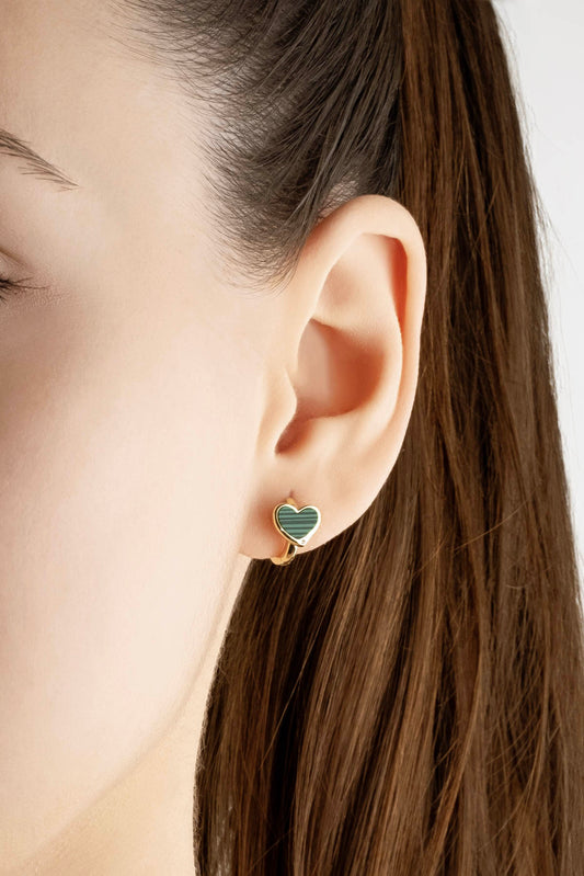 Malahit Kalbi 18 Ayar Sarı Altıın Kaplama Gümüş Halka Küpe 07299310444