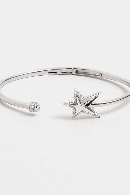Dilek Yıldızı 18 Ayar Beyaz Altın Kaplama Gümüş Kelepçe Bileklik 07304560199